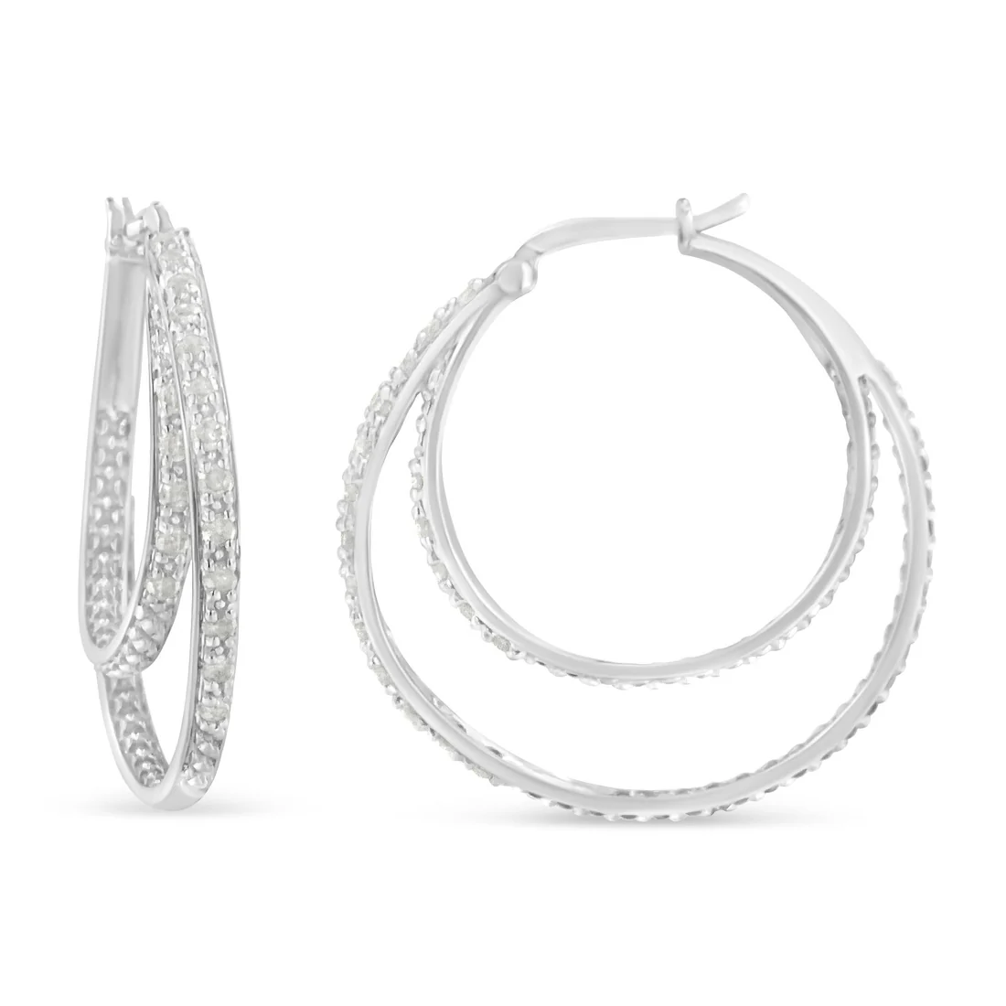 Product: .925 Sterling Silver 1/2 cttw Miracle-Set Diamond Double Hoop with Latchback Earrings (I-J Color, I3 Clarity)