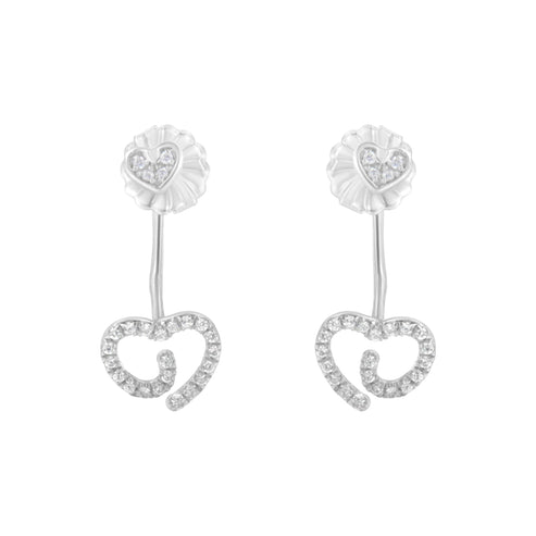 .925 Sterling Silver 1/4 Cttw Diamond Swirl Heart Front/Back Earrings (I-J Color, I2-I3 Clarity)